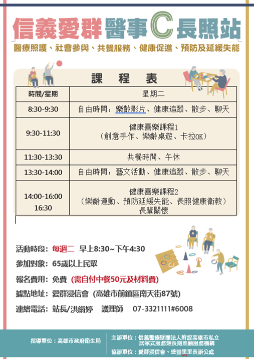據點名稱 信義愛群長照站 據點地址 高雄市前鎮區南天街87號